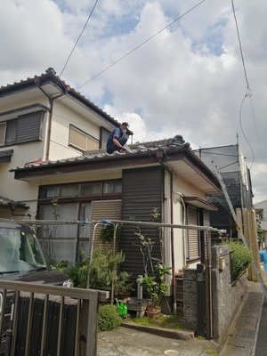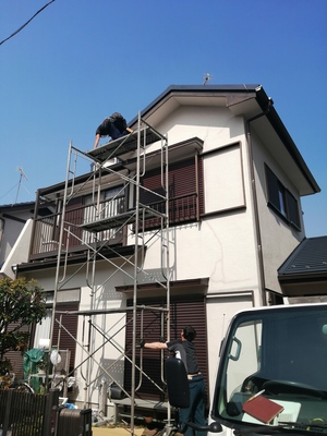 五月晴れの千葉市です。 本日は新しいお客様の 屋根工事にお伺いしております。 瓦を乗せている屋根の縦部分の木を 「破風(はふ)」と言います。 壁と違って、木でできている為 腐食しやすいのです。 そこをさびにくい板金で巻く工事を しております。 天気が良いので 暑いですが 職人さんも 安全に気を付けて 施工中です。