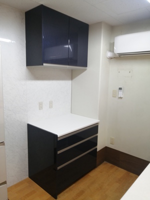 対面型のキッチンに家電収納のセット。
