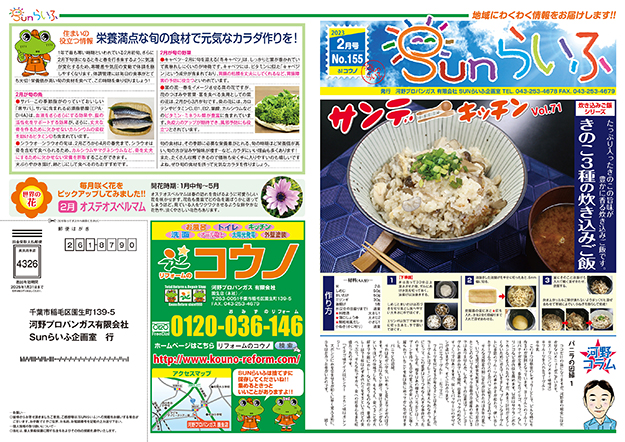 2023.02.01155号 表紙:「きのこ3種の炊き込みご飯」