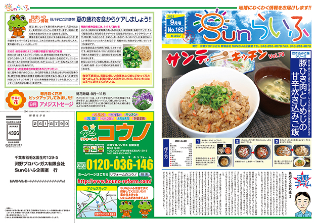 2023.09.01162号 表紙:「豚ひき肉としめじの甘辛炊き込みご飯」